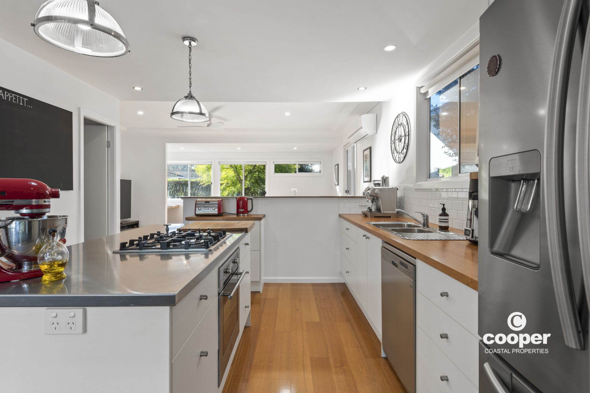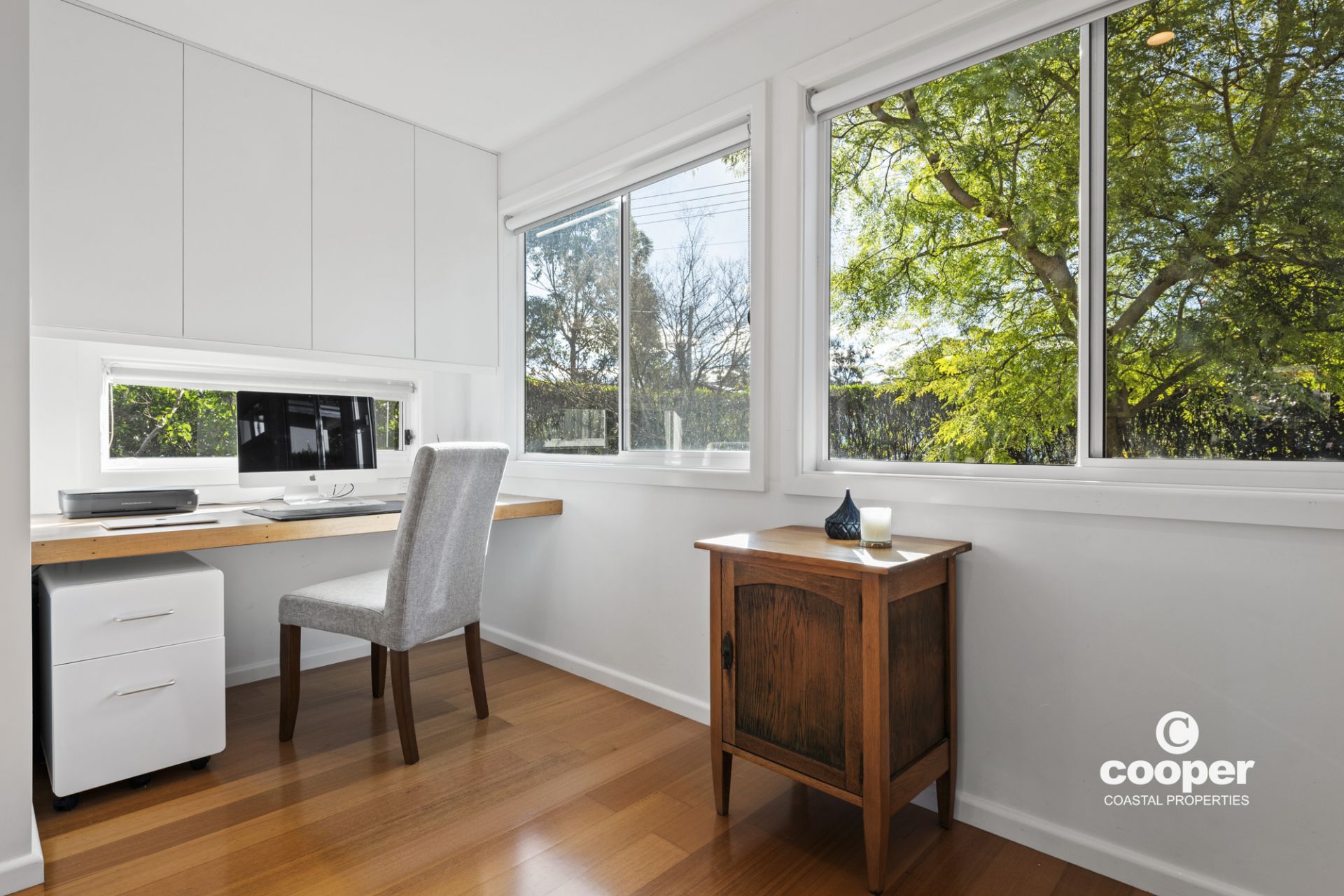 Light and airy with oak floors, slow combustion wood fire, fans and reverse cycle air conditioning, the cottage offers 2 bedrooms, large bathroom with deep bath to relax in and an entertainer’s kitchen opening onto the covered entertaining deck plus a sunny front deck, and study area overlooking the private front garden.