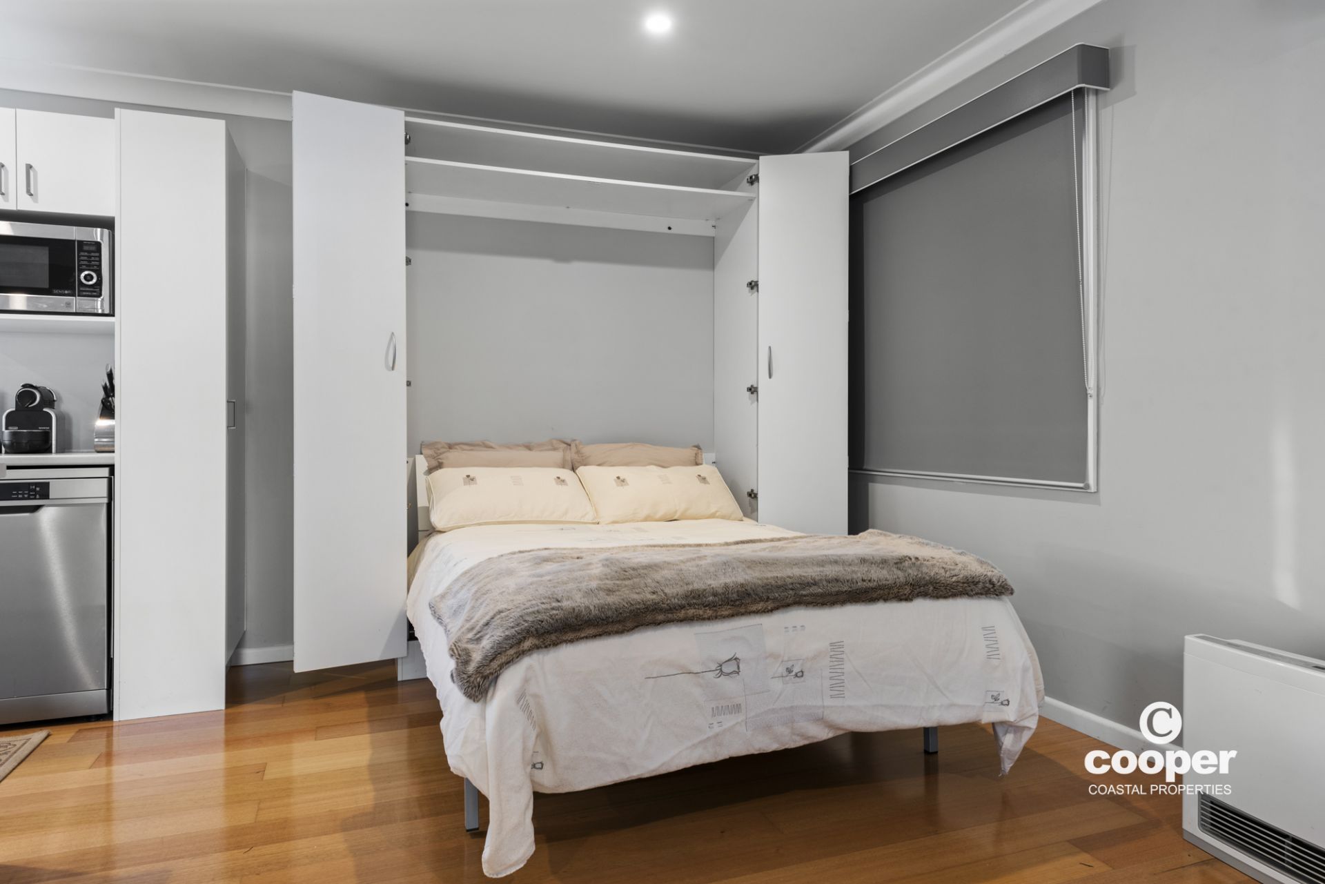 The well designed granny flat is separately metered and has its own deck, lounge/dining area, kitchenette, bedroom and bathroom. There is even a pull down bed hidden away in a cupboard for extra guests.