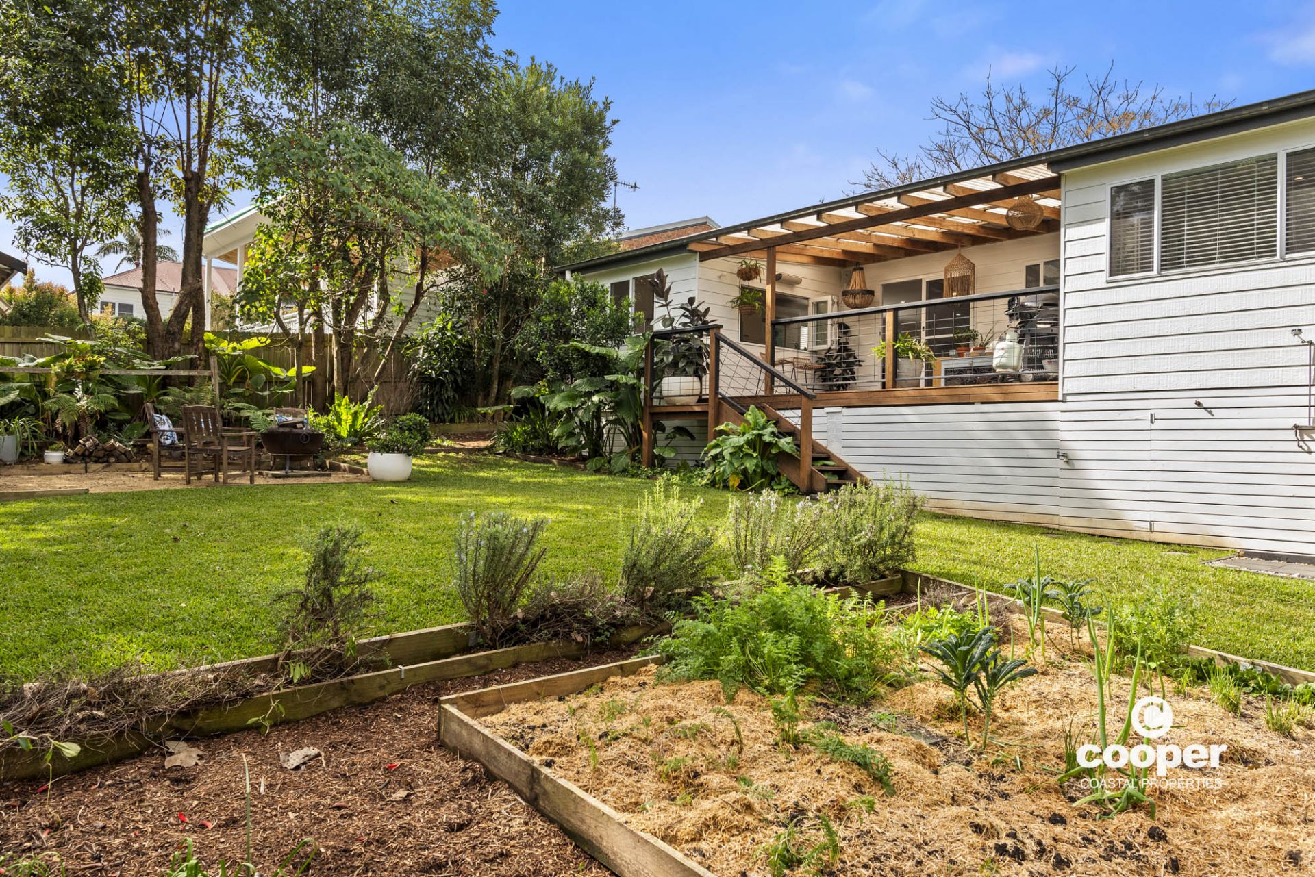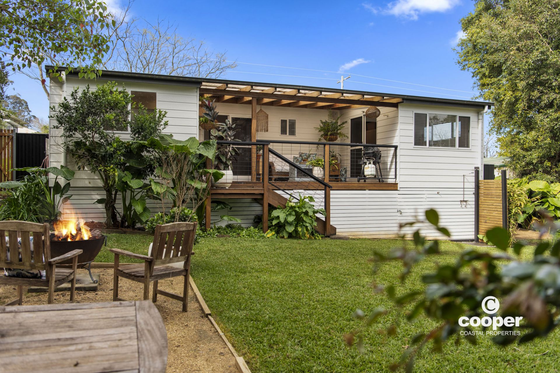 Inside the elegant and comfortable light-filled home has been lovingly renovated and styled. The bespoke kitchen will inspire the culinary minded and is ideal for entertaining friends and family with dining and lounge close by and bifold windows opening to the north facing rear deck, or enjoy an al fresco meal around the fire pit with its leafy surrounds.