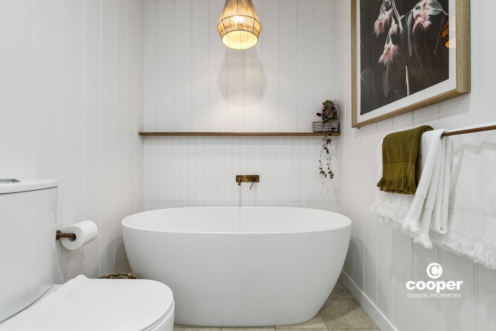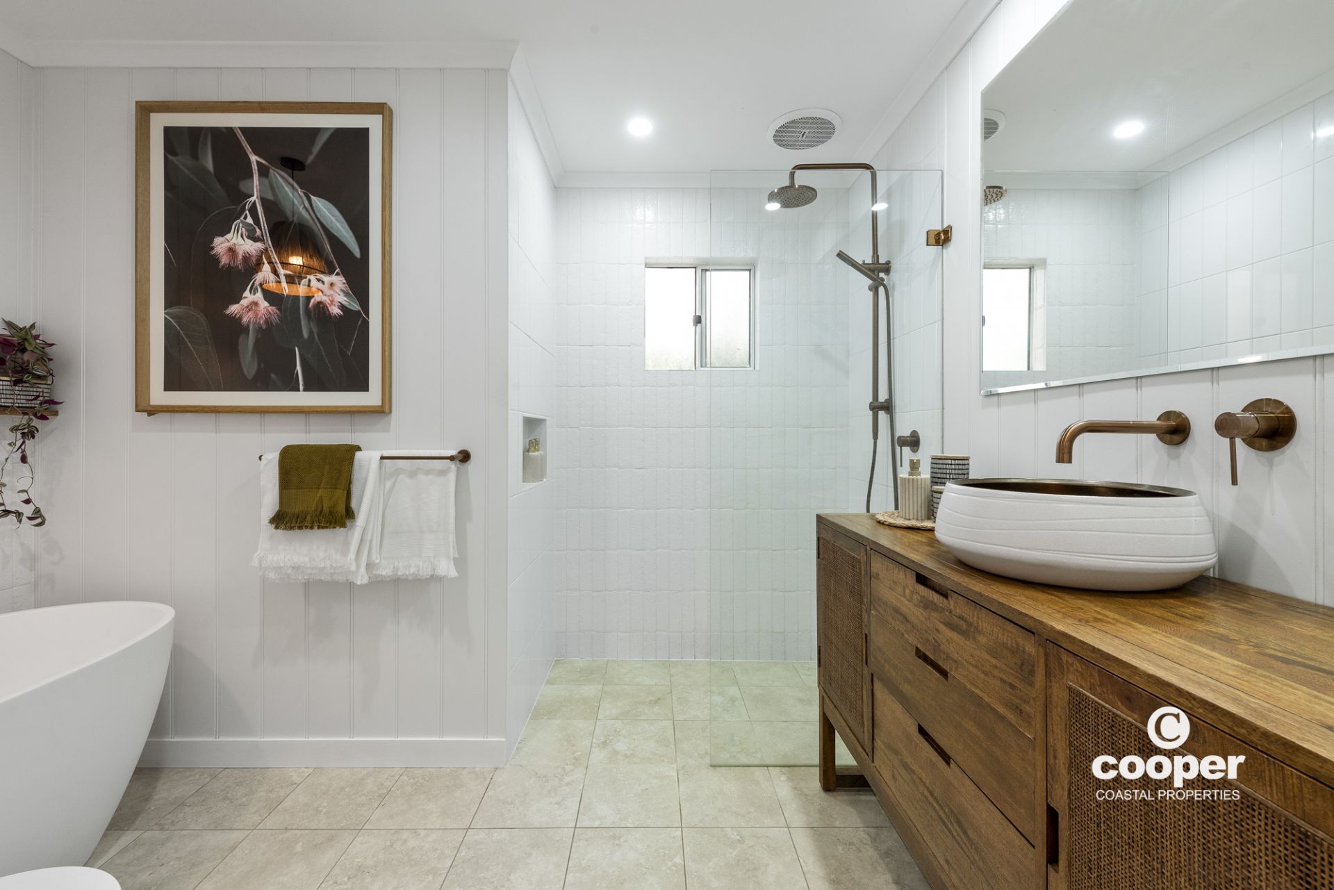 * Large luxurious bathroom with free standing bath & copper tap ware