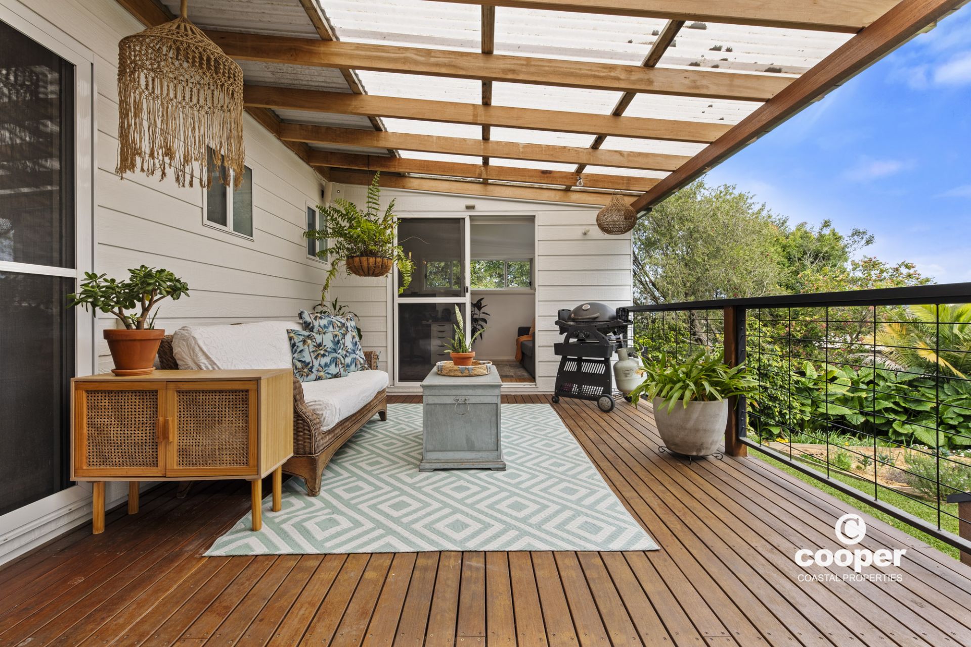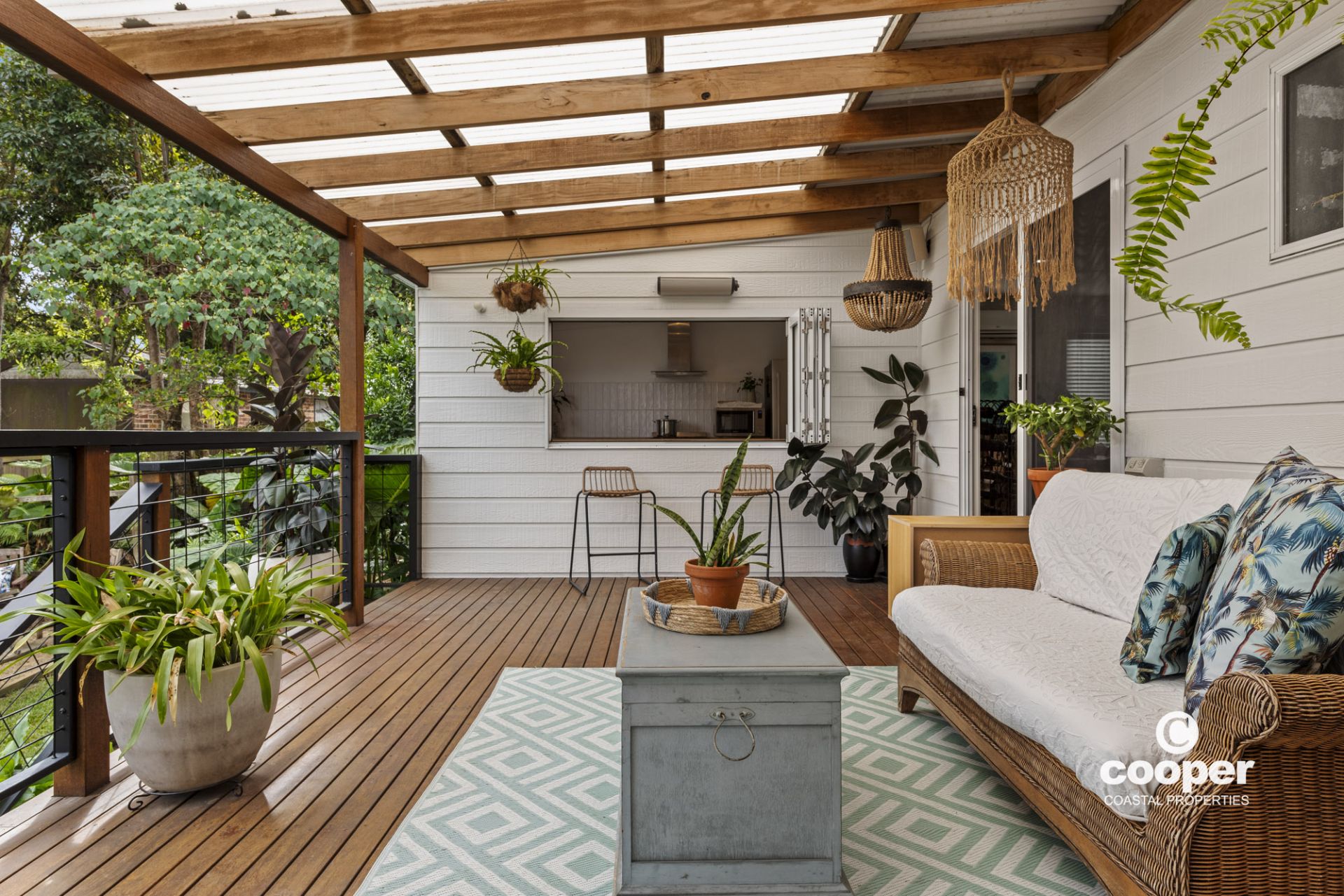 * Covered rear deck with bifold window access to kitchen