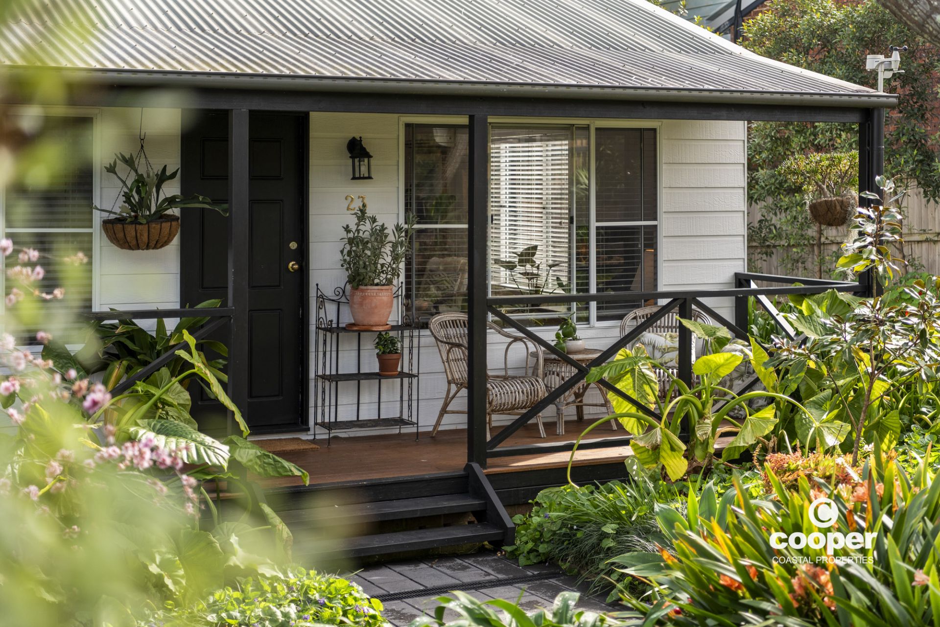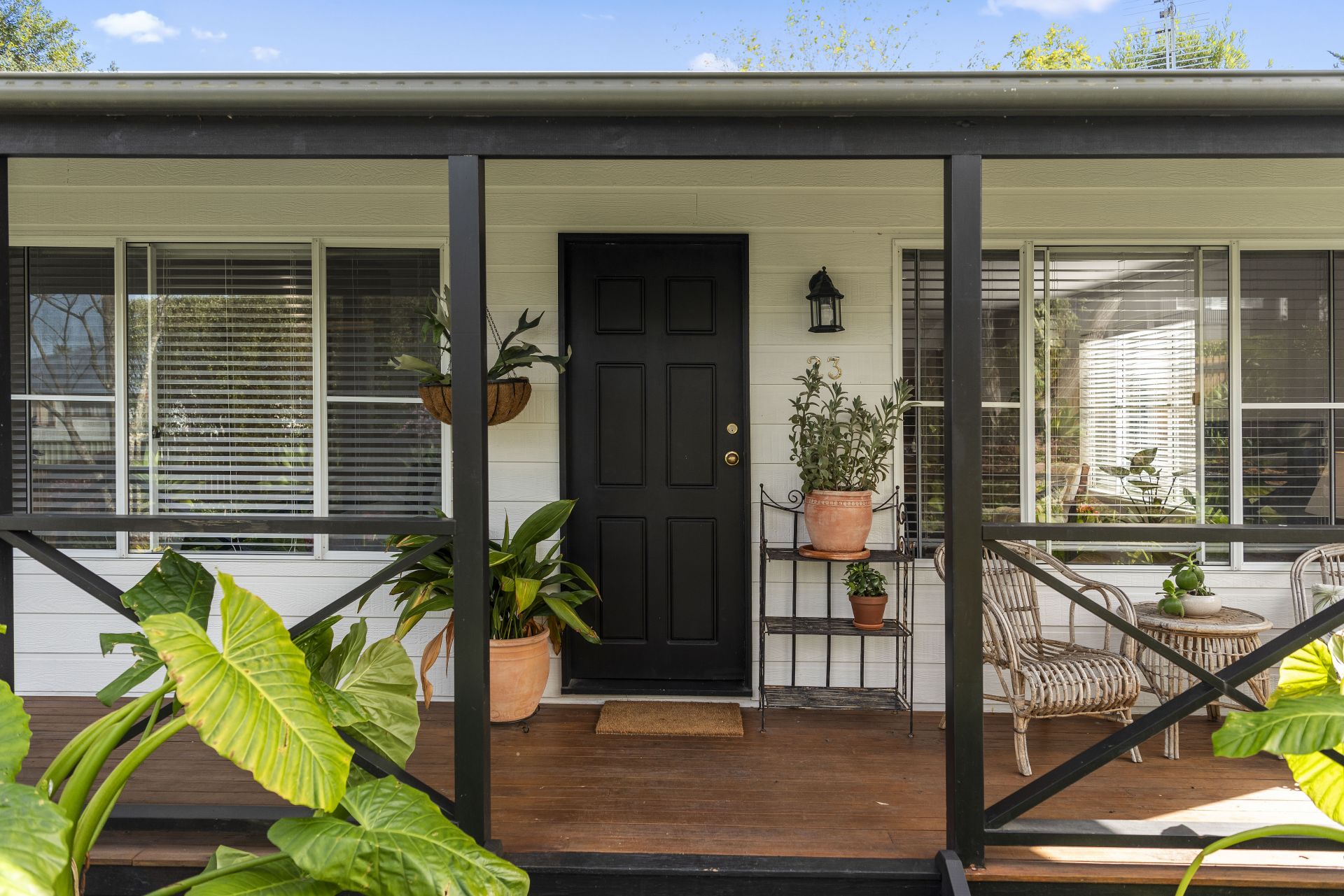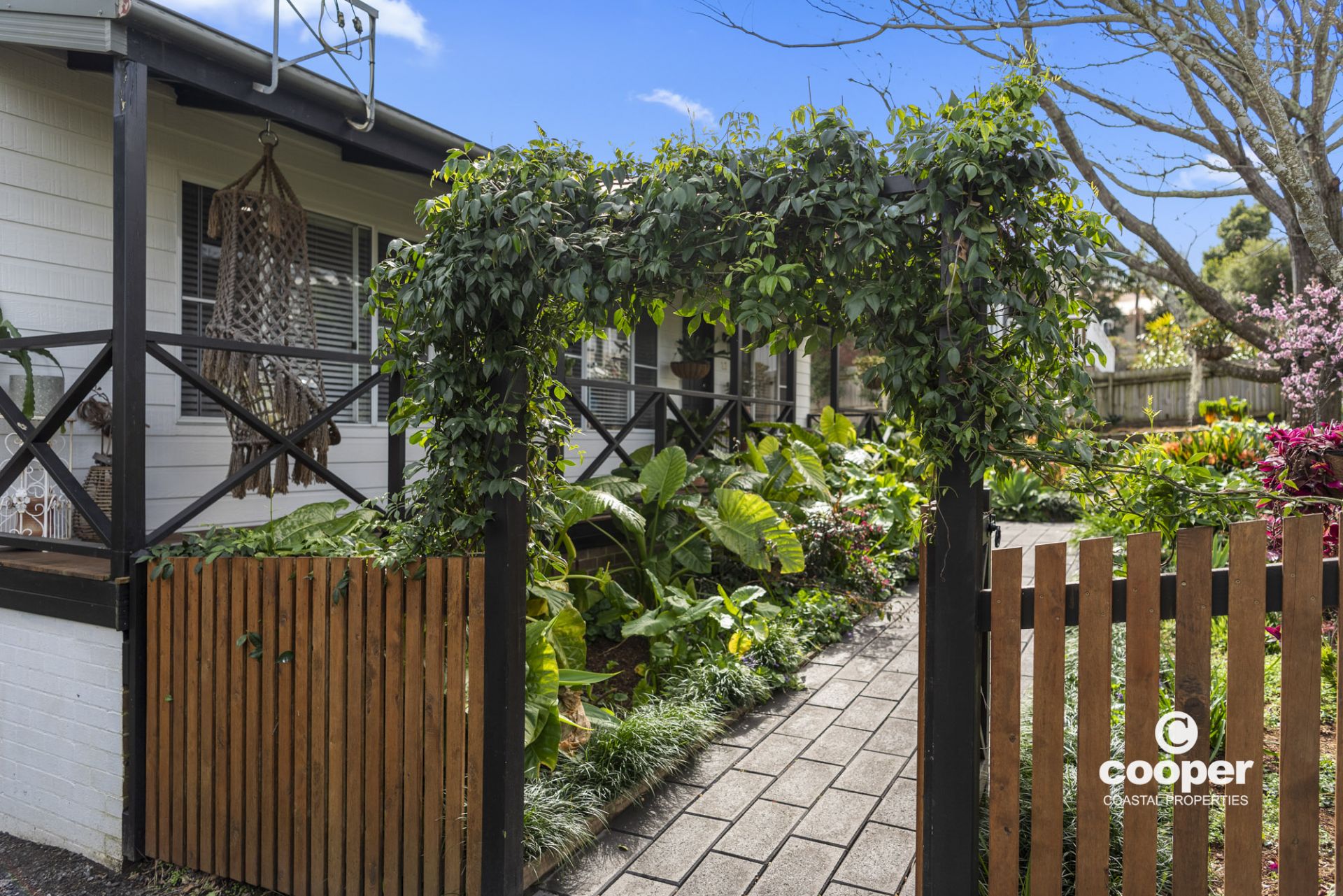 Private and tranquil, you enter through the leafy archway and garden path leading to a peaceful front porch overlooking the gardens, just the place to enjoy a cuppa and relax with a book.