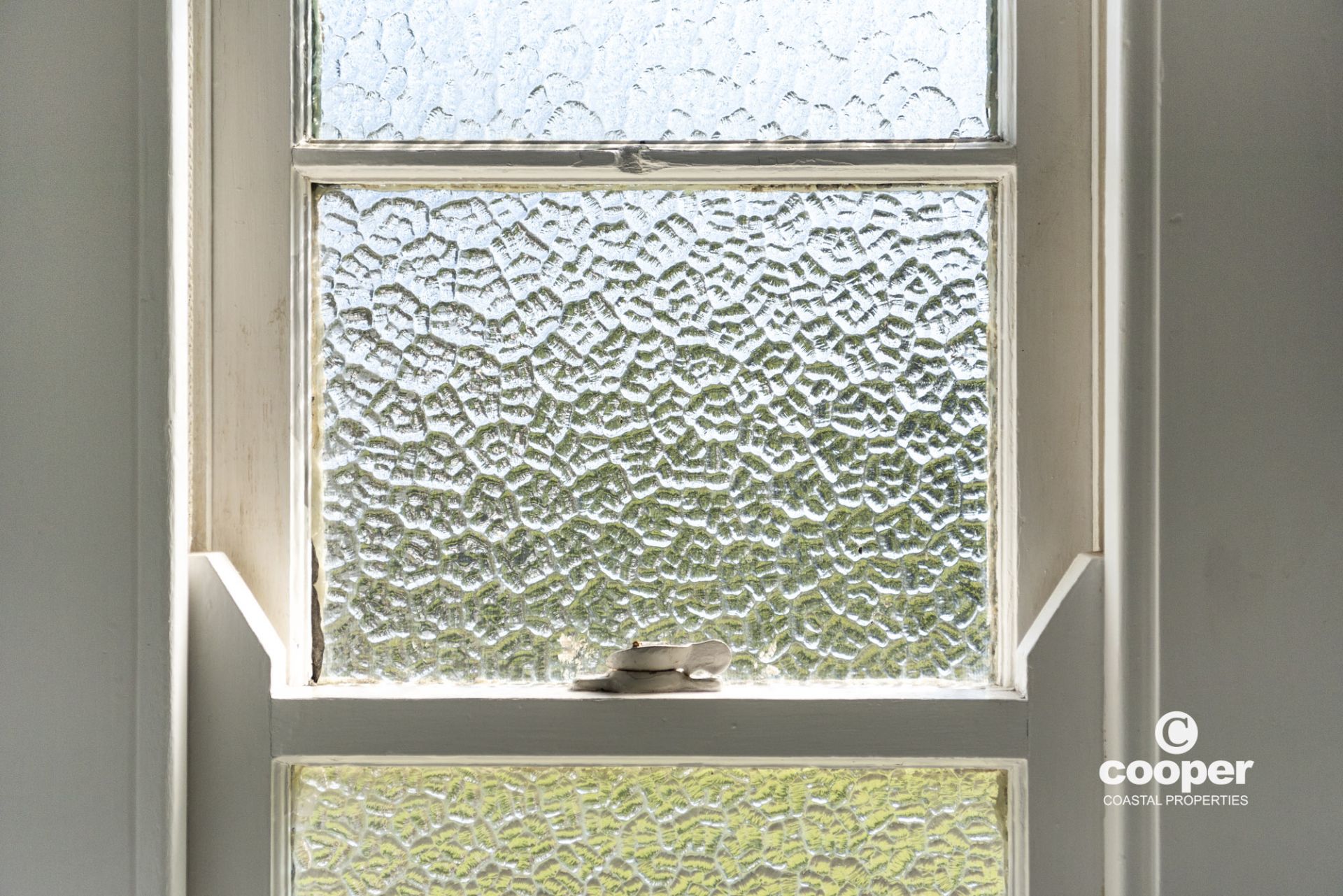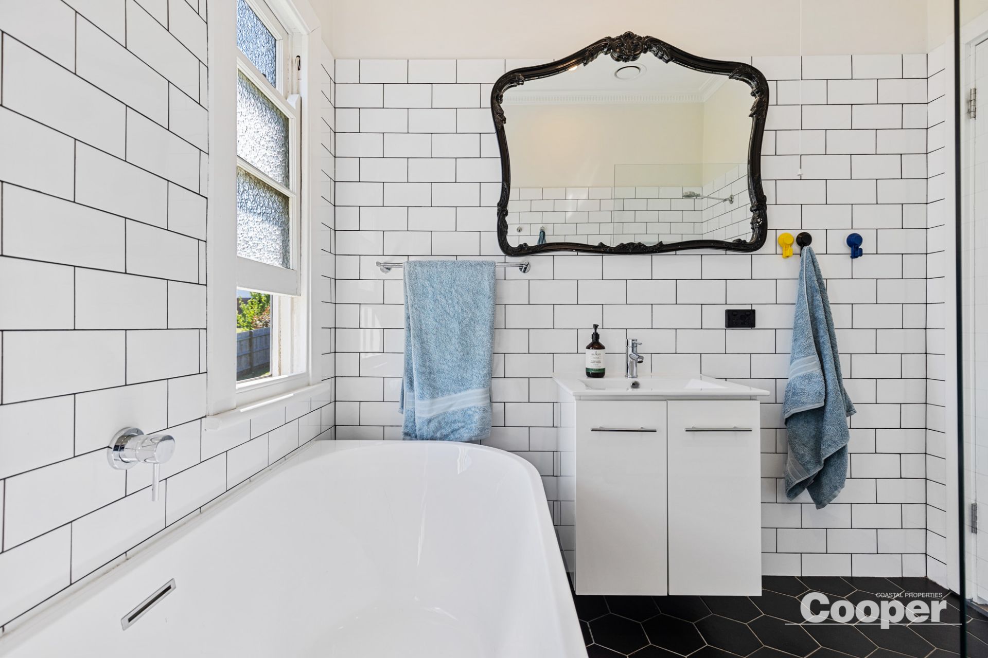The bathroom is a real talking point; with free standing bath, frameless glass shower screen, double frosted original windows, black & white tiled floors - a real showroom piece.
