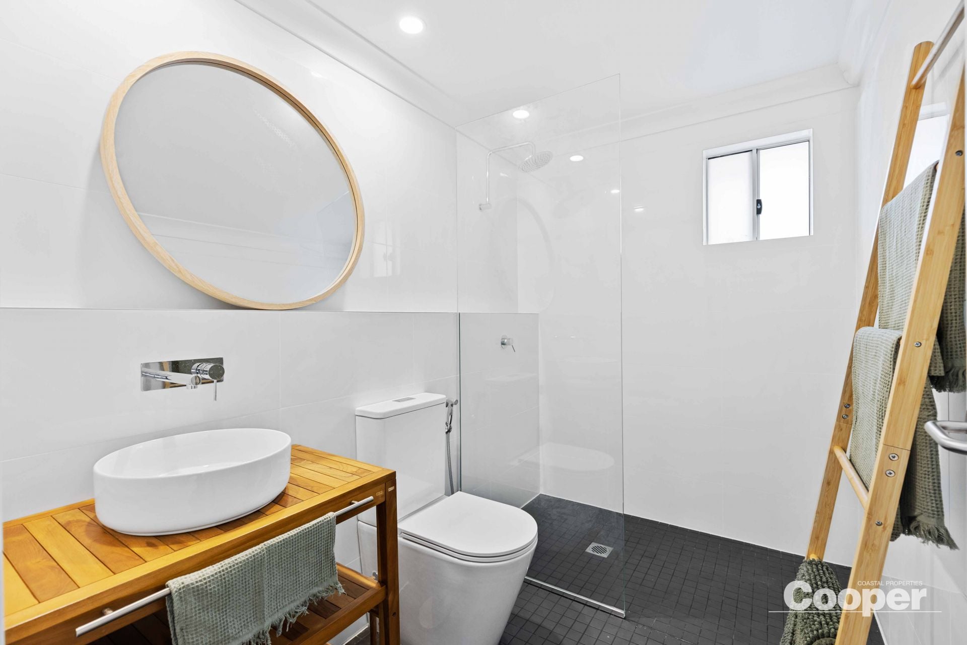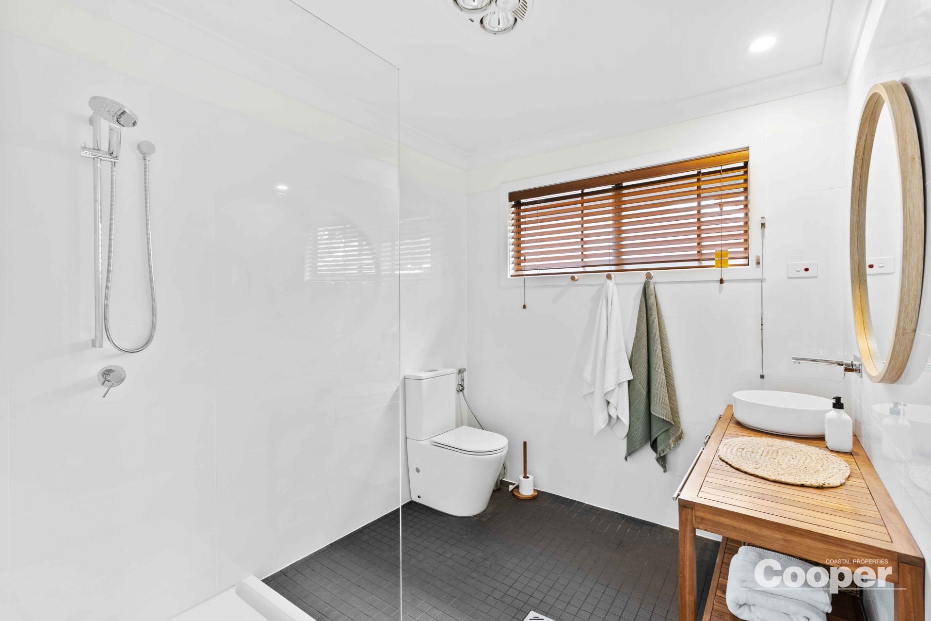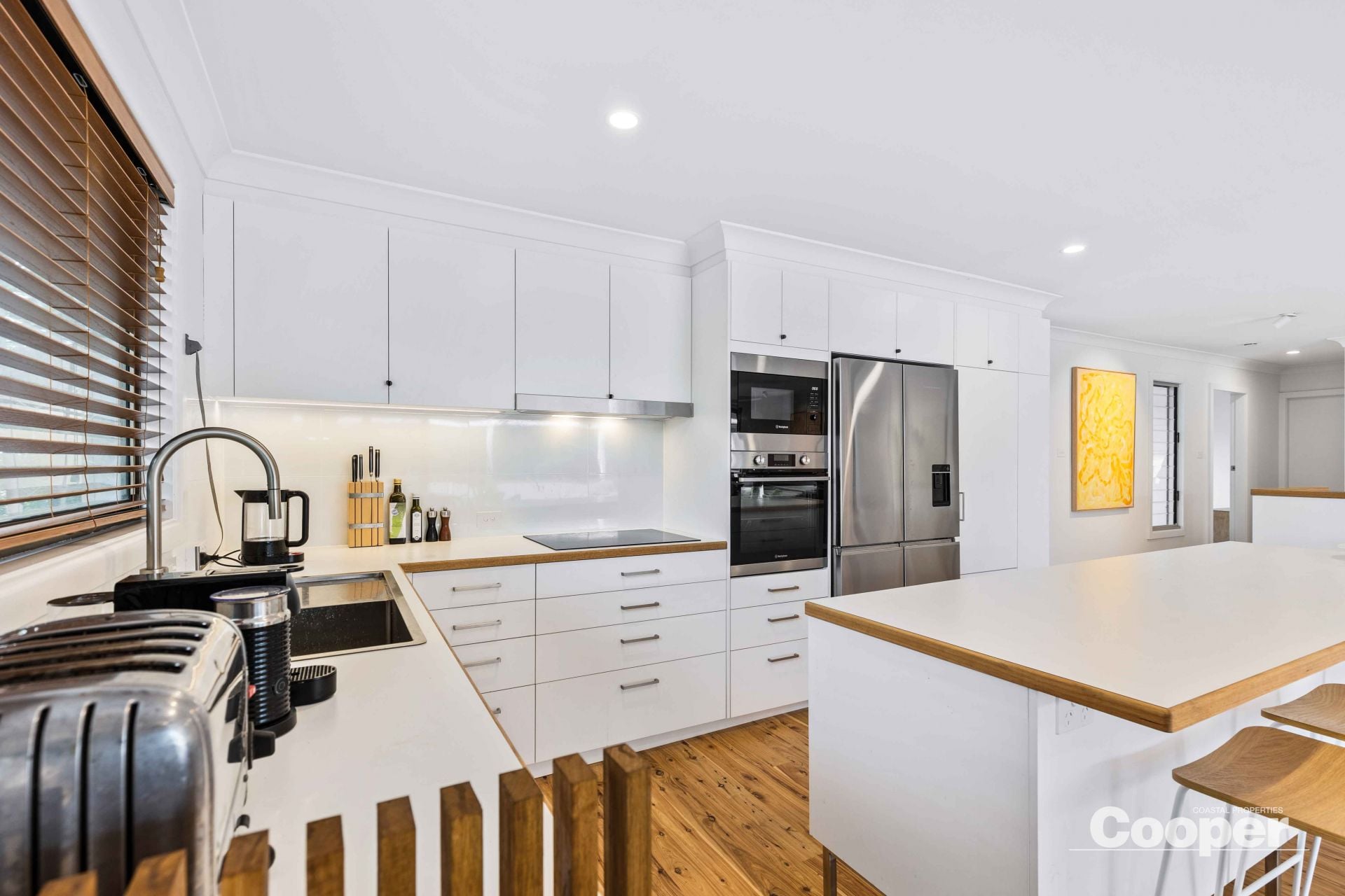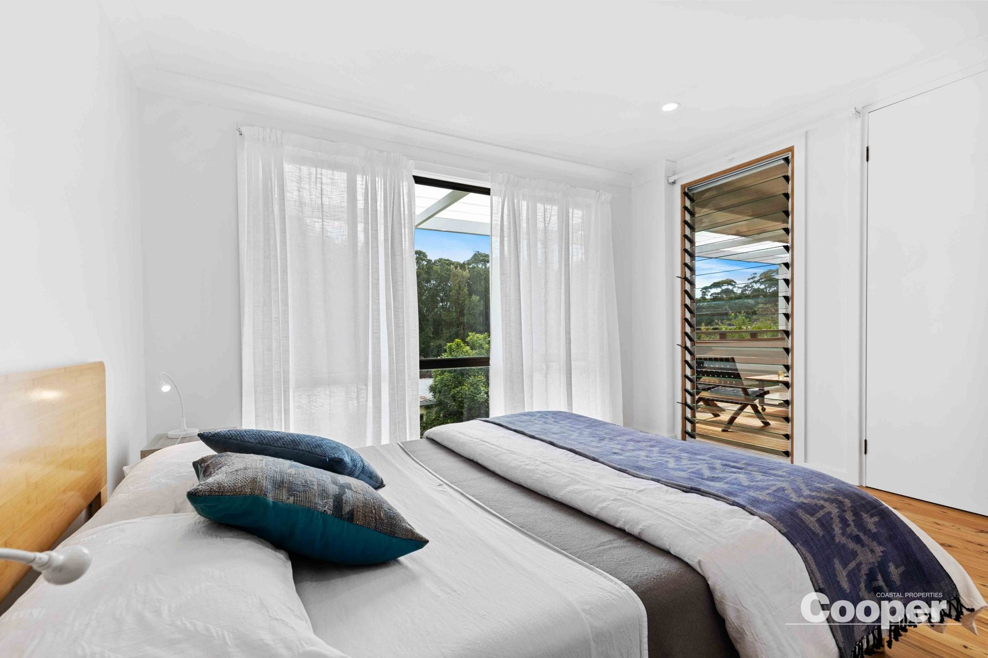 Sunny is a 2 storey house to the street and 3 storeys to the north. The top level has the brand new kitchen, dining and living areas as one generous space flowing out onto the large northerly deck overlooking the lagoon and its natural environs. This huge timber terrace enjoys full north sun from dawn to sunset, an abundance of birds, and is the natural space for breakfast through to evening drinks.