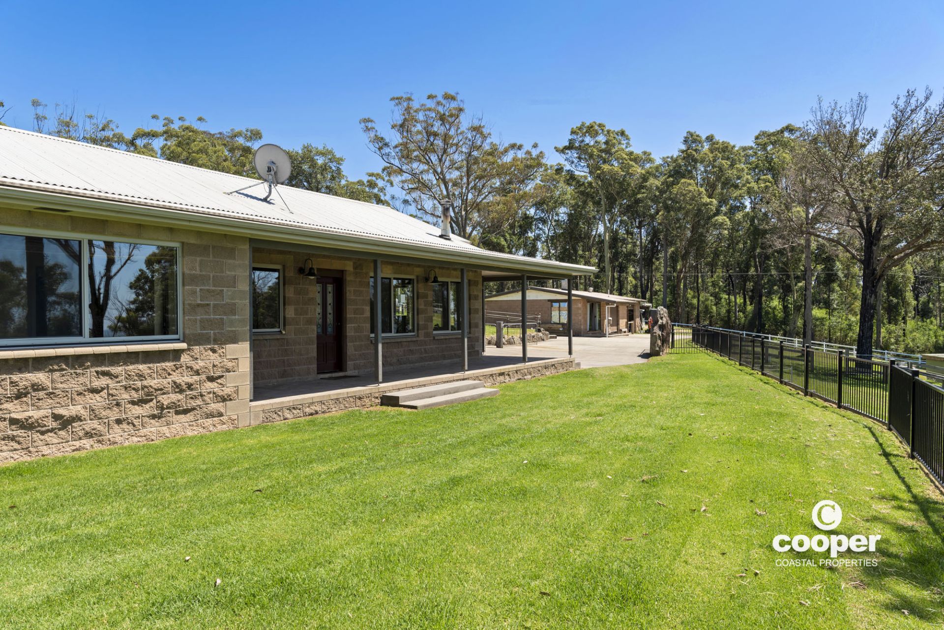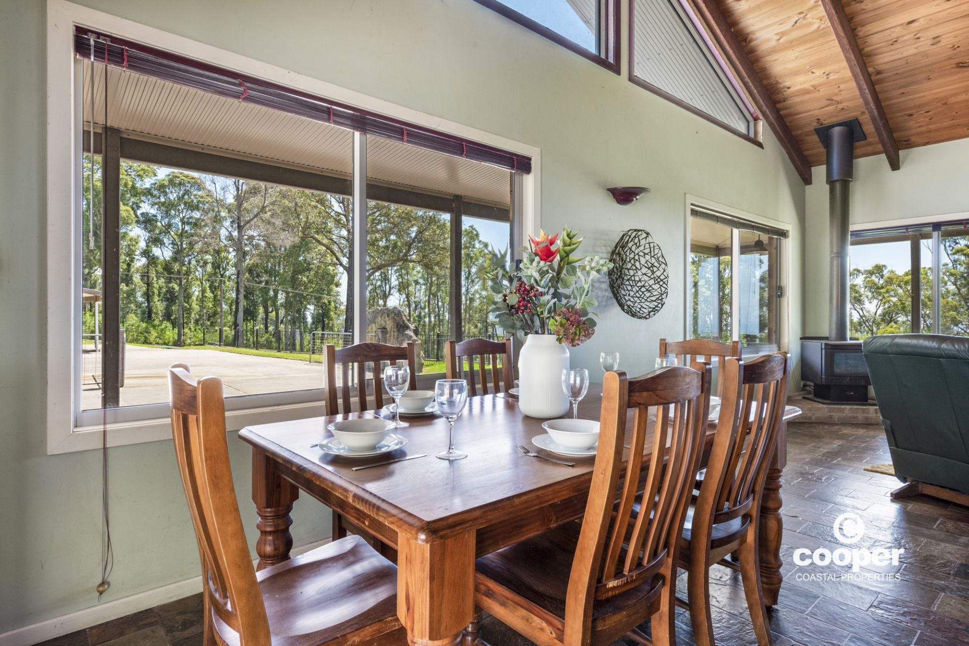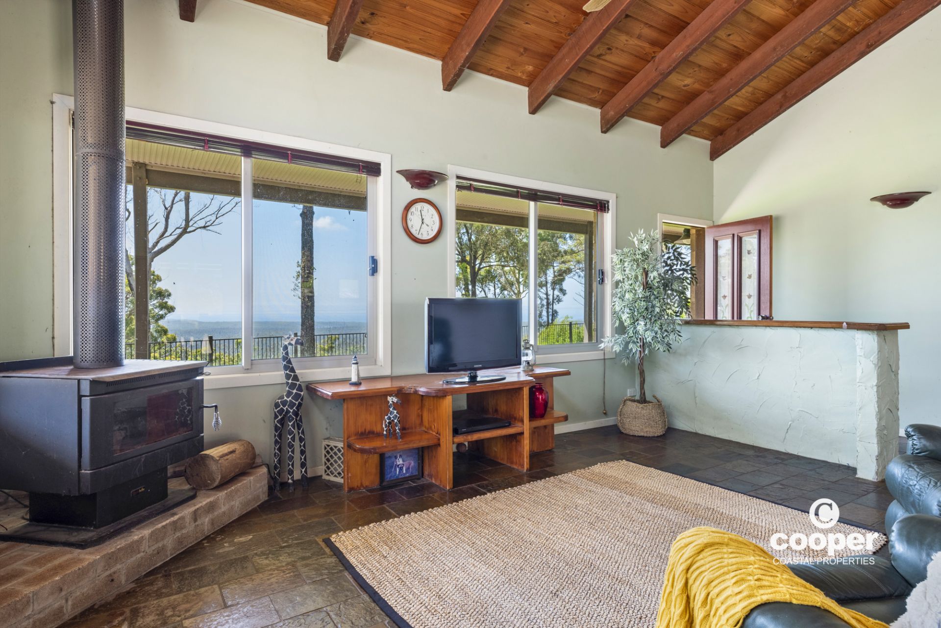 The single level country style home features wrap around verandahs and raked timber ceilings, north facing highlight windows to capture the light, and a cosy wood fire to keep you warm in winter.. Enjoy the beautiful views from most windows, looking out over rolling green pastures, friendly equine faces and the stunning ocean views. Practical hard wearing slate floors at front and rear entries, kitchen, dining and living rooms and beautiful spotted gum timber floors in the hallway and bedrooms. The outdoor entertaining area features local boulders nestled into the land to provide a private al fresco space and unique retaining wall.