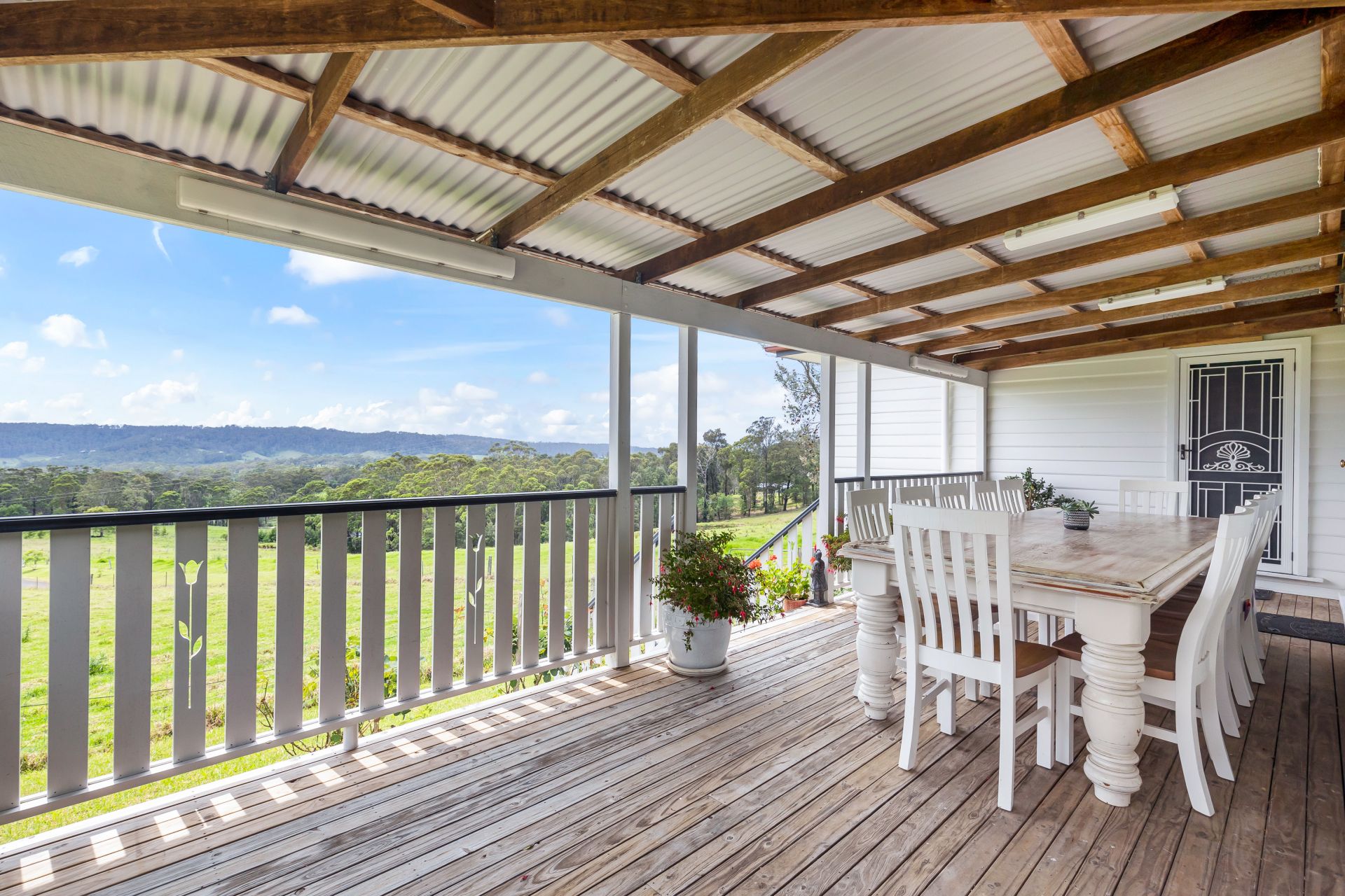 Relax and enjoy the panoramic views and cooling coastal breezes from the elevated decks and the scenic rural views from almost every room. The classic 3 bedroom weatherboard home features 9 foot ceilings and French doors inviting natural light plus the comfort of airconditioning, fans and a slow combustion fire in the living area - perfect for winter nights.
