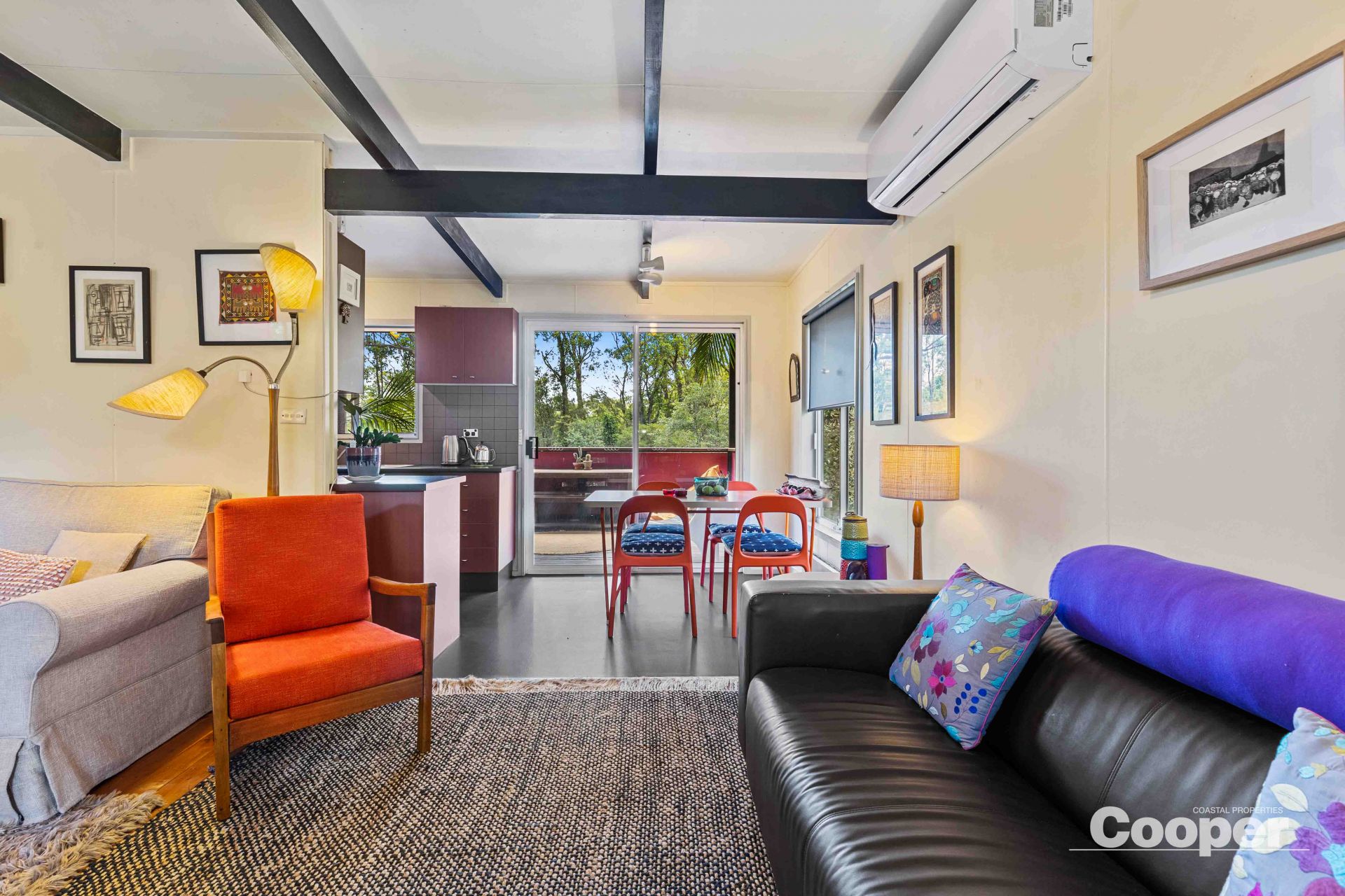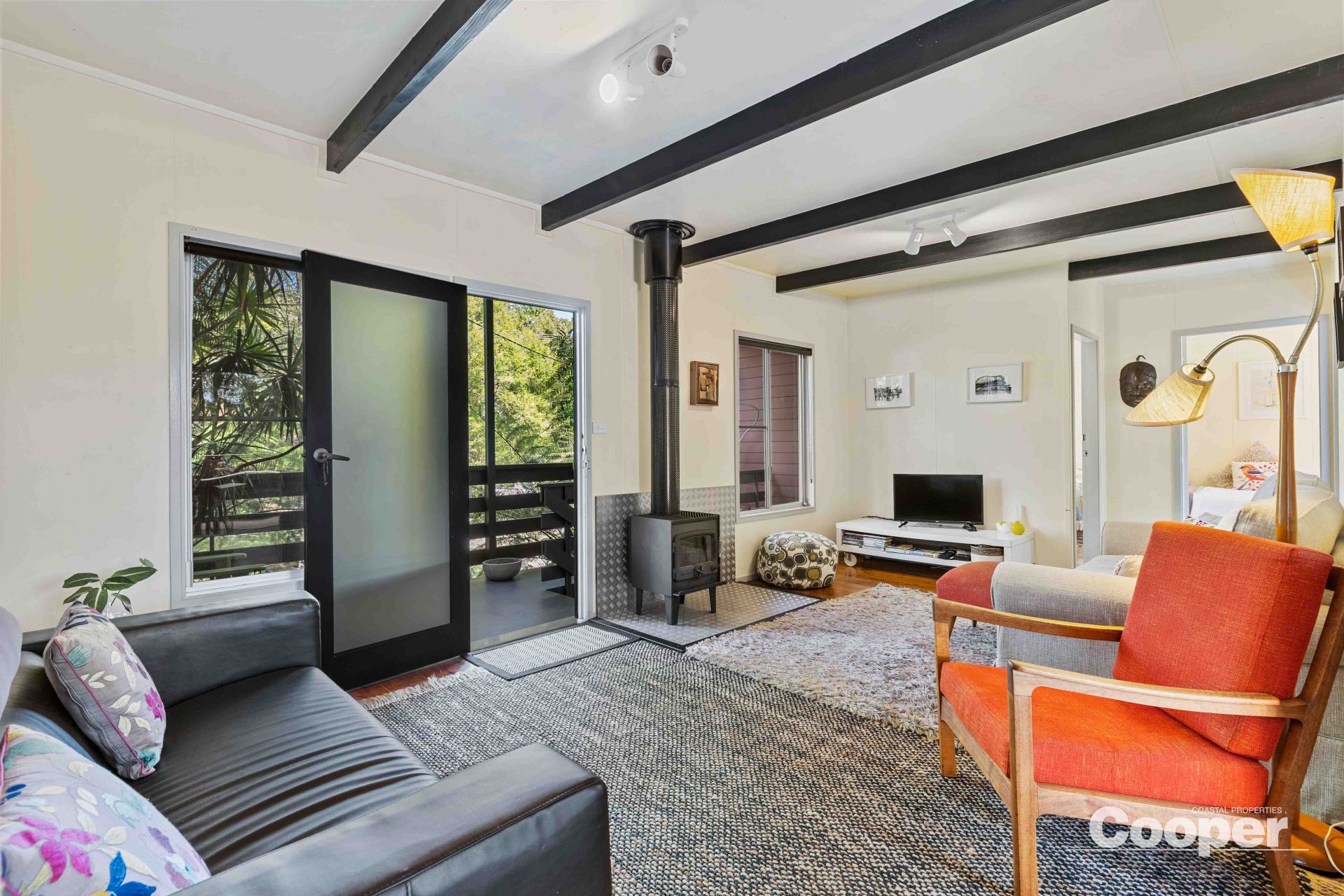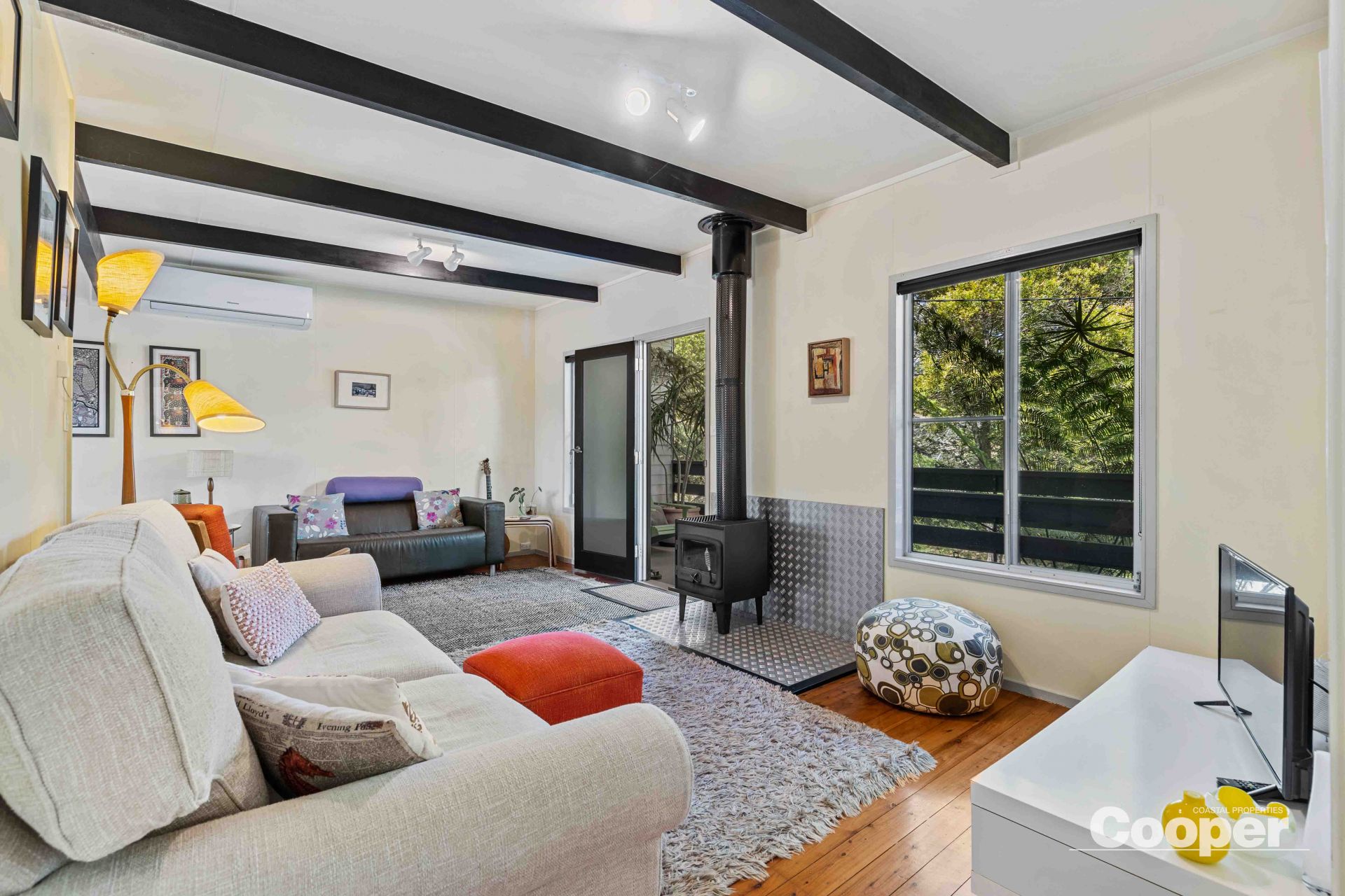 The well maintained cottage features cypress pine floors, exposed beams and open plan living/dining/kitchen opening onto a sunny north facing deck with private, leafy aspect. The elevated position takes advantage of the cooling summer breezes and slow combustion fire and brand new air conditioning will keep you warm in winter and cool in summer.