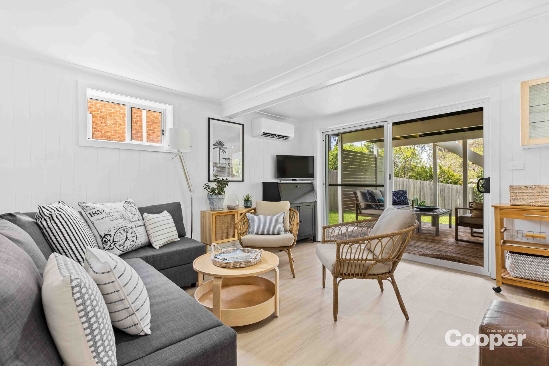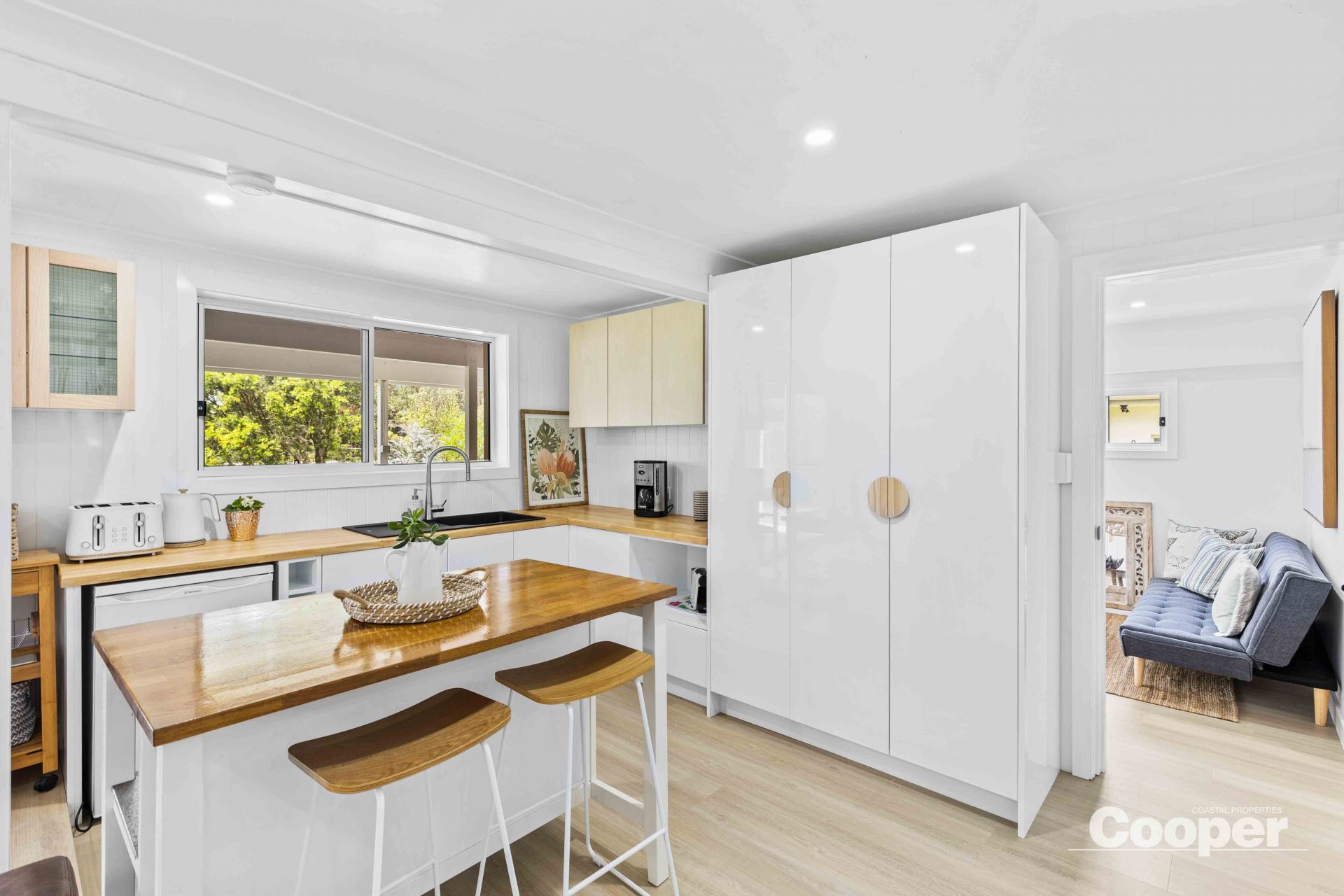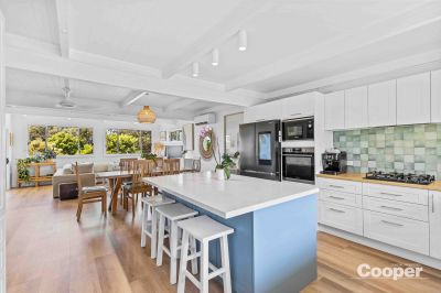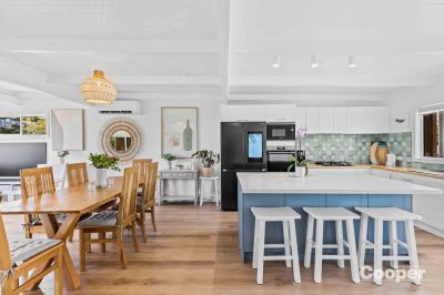 Inside, the bright and airy four bedroom home has been thoughtfully renovated to blend style with comfort. The stunning new kitchen features a gas cooktop, quality electric appliances, a generous island bench, and plenty of storage – perfect for everyday living and effortless entertaining. Coastal-inspired timber accents, crisp white interiors, hybrid floors, ceiling fans and reverse cycle air conditioning complete the tranquil seaside feel.