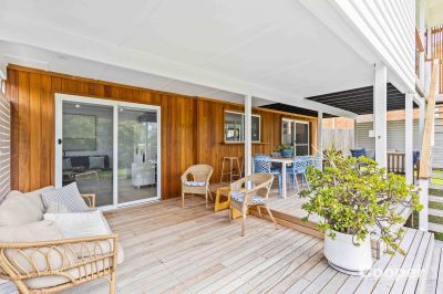 The downstairs area also provides a private retreat for guest or extended family, while under house storage keeps your beach gear and garden tools neatly tucked away. A hot and cold outdoor shower, low maintenance landscaped gardens, and side access to the rear yard all add to the functionality of this well designed home.