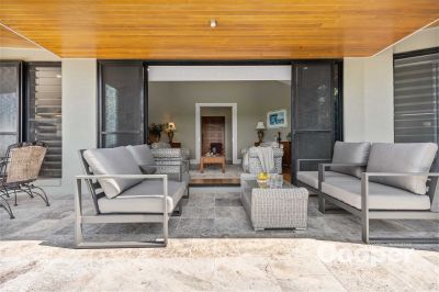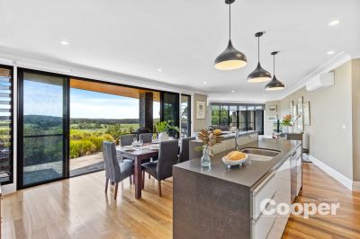 At the heart of the home, the spacious open plan kitchen, dining and living area provides the perfect setting for both relaxed family living and grand entertaining. Enjoy breathtaking north facing views across the gardens and countryside to the ocean beyond, with stackable sliders opening to a sun-drenched terrace. The kitchen is beautifully appointed with a large island, well-designed butler's pantry and wine cellar nearby.