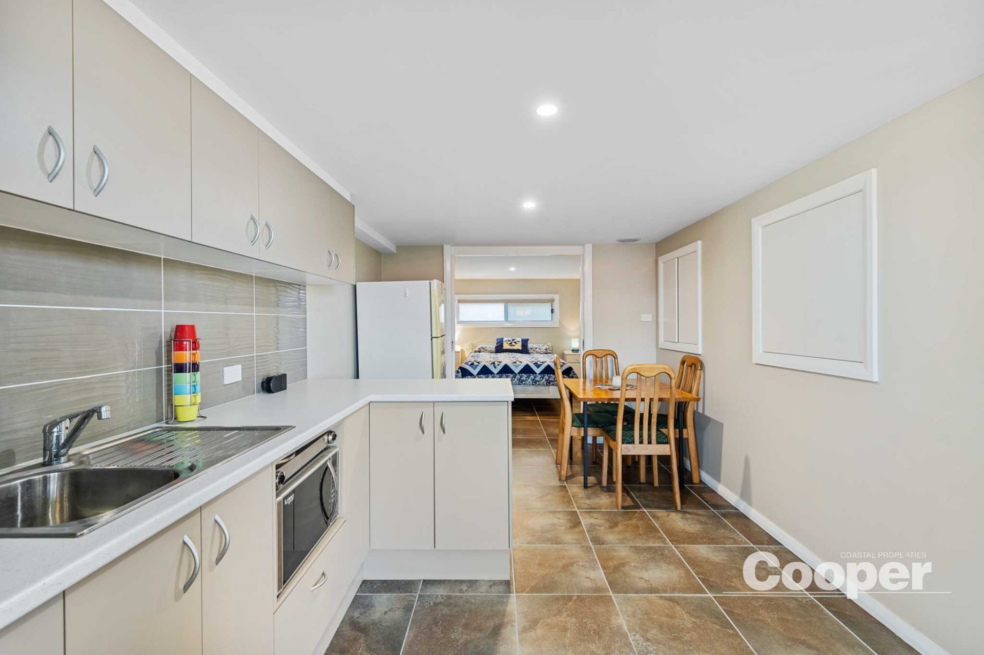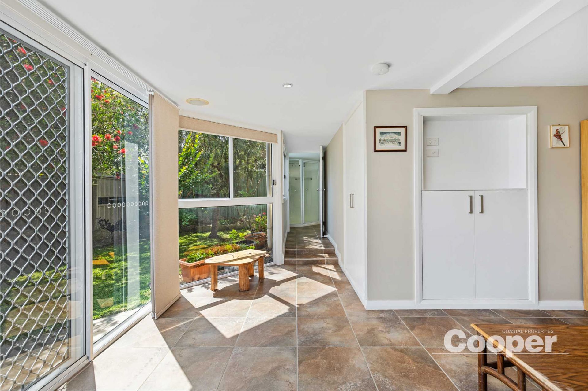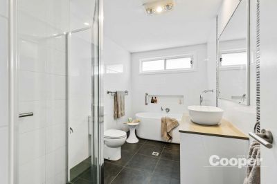 The main level features a light filled three bedroom home with sunny north facing aspect. A modern central kitchen and dining area open to an expansive enclosed sunroom with bifold windows and doors leading to a cosy alfresco balcony – the ideal spot to enjoy the sea breeze.