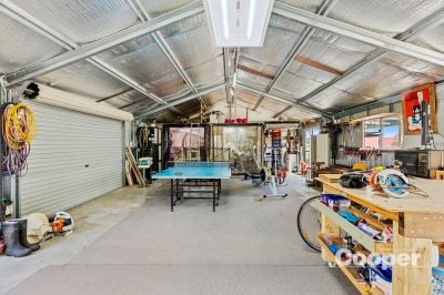 A large powered and insulated shed, a garage with attached hobby room and a generous carport provide excellent storage and workspace options.