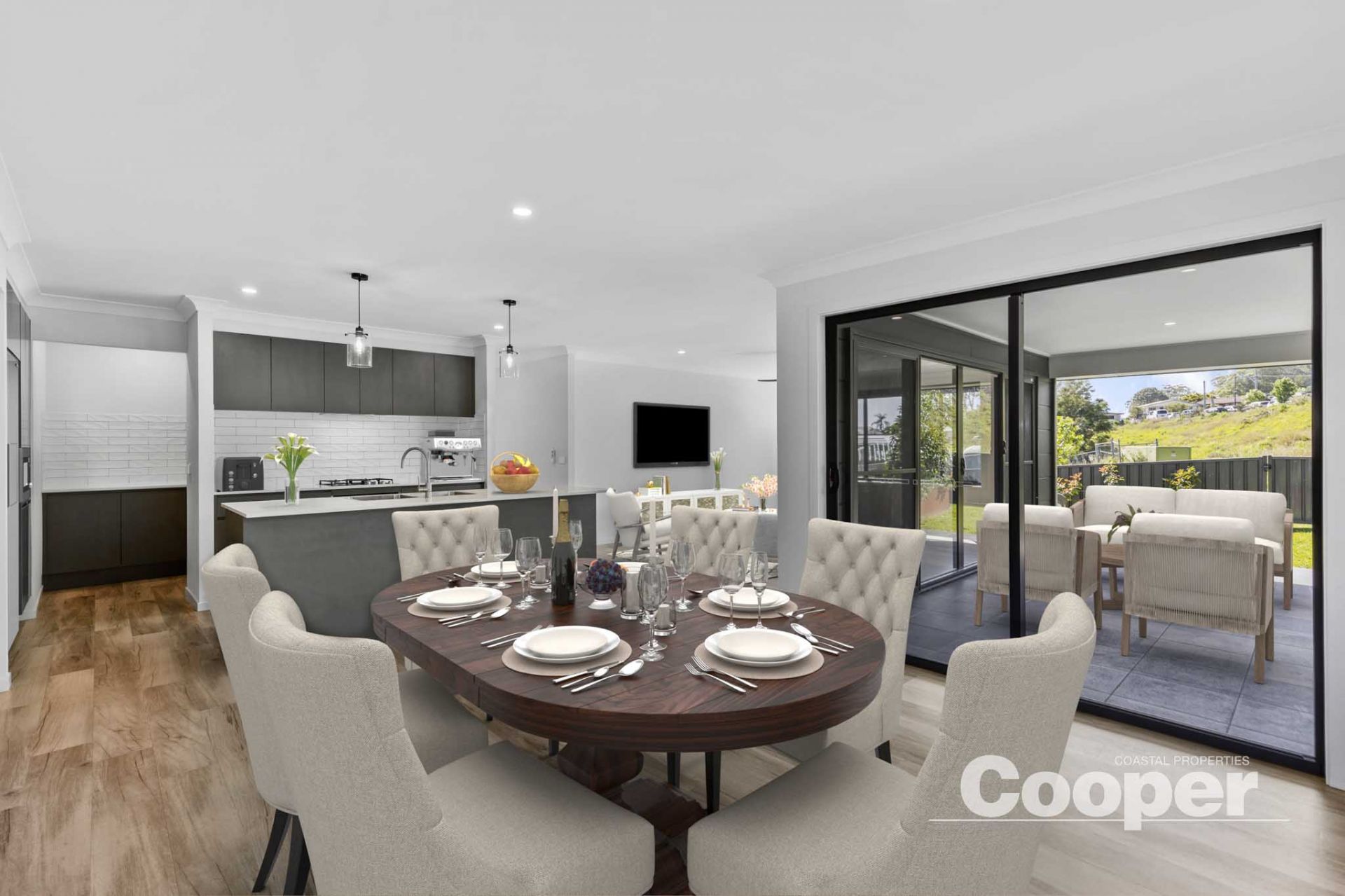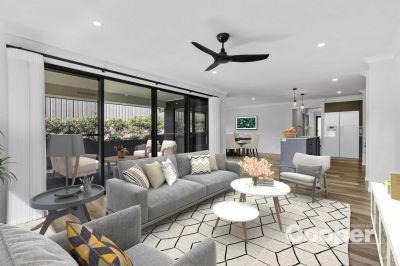 The light filled open plan kitchen, dining and living area forms the heart of the home, featuring a walk in pantry and seamless flow to a covered outdoor patio - ideal for year round entertaining. Two additional bedrooms, the main bathroom with free standing bath and an internal laundry are thoughfully positioned at the rear.
